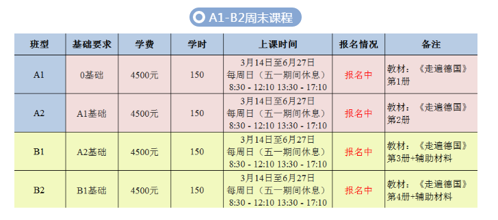 A1-B2、德福课程团报优惠:三人及以上一起报名,每人优惠300元。